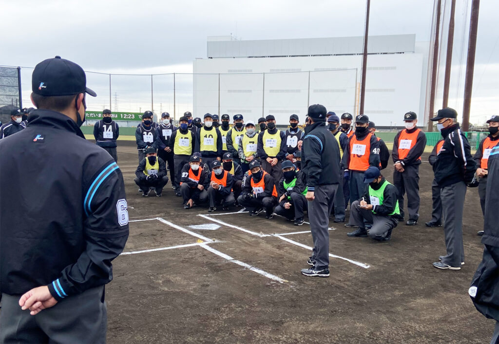 Go(ゴー)!Stop(ストップ)!Call(コール)!…He’s out! 千葉県柏市のJR東日本野球部柏野球場で、総勢約60名の審判員たちの迫力ある声が響き渡った。新型コロナウイルス感染症の影響で開催中止となっていたアンパイアスクール(BFJ・NPB共催)が、3年ぶりに復活。Go-Stop-Callで響く審判員受講者の声には、このスクールの開催を待ち望んでいた思いが強く込められているようだ。