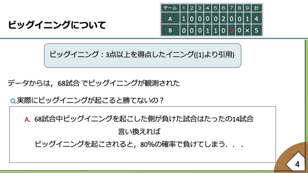 ビッグイニングが試合結果に及ぼす影響について分析