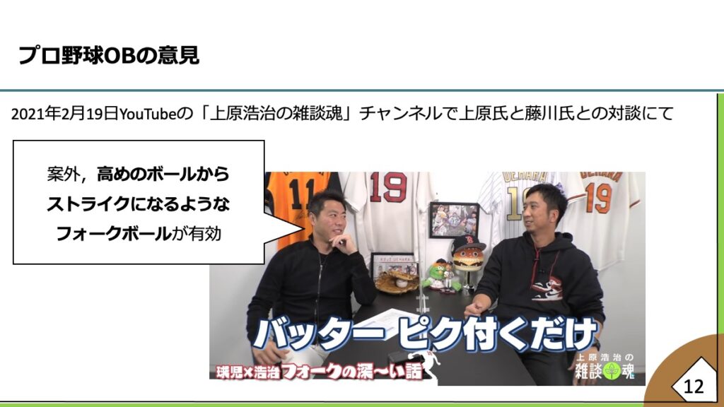 スライド内の画像 引用=上原浩治の雑談魂「【たった1打席の対戦が頭から離れない…】藤川球児が嫌いだった6人の打者【逆に◯◯は楽勝でした】【球児浩治の深〜いフォーク談義も】【巨人阪神】」より