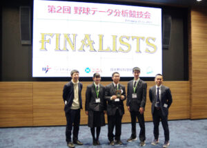 2月22日から23日にかけて行われた第2回野球データ分析競技会(全日本野球協会・日本野球連盟共催)で、優秀賞に選ばれた同志社大学Bチーム。表彰式で述べた喜びの挨拶で「野球のデータに触れるのは初めてだった」と、チームの中に野球についてはほぼ初心者のメンバーがいることが明らかになった。なぜ、そのような学生が今大会に出場したのか。彼らの目的、また今大会で得たものについて伺った。