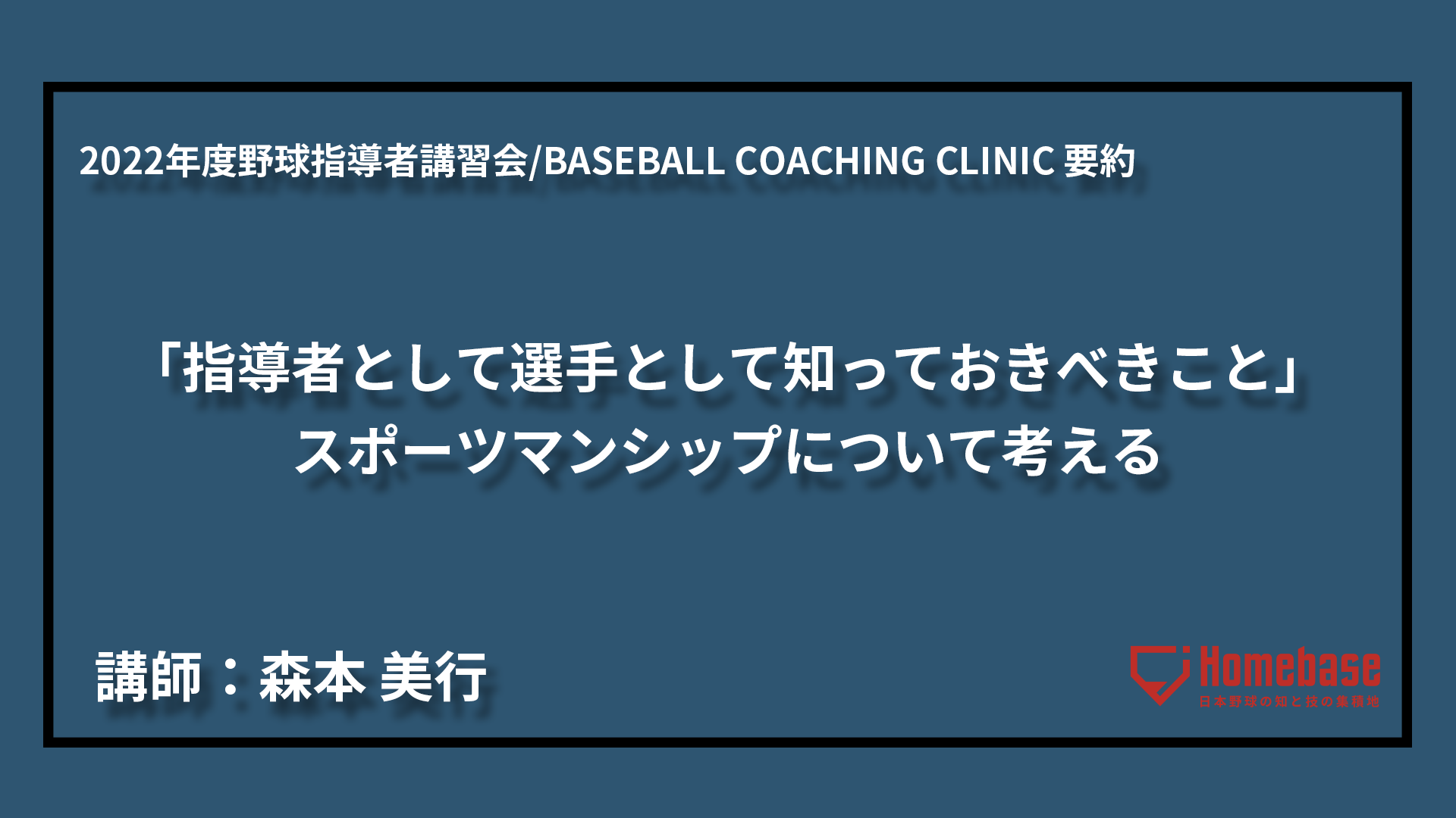 本記事が、「スポーツとは何か? 」「スポーツマンシップとは何か?」これらの問いについて考えて行くきっかけとなるように期待するとともに、実際に記事を読んだ指導者がスポーツマンシップを意識して行う日々の指導が、野球そしてスポーツの価値を高めていくことに繋がると信じている。