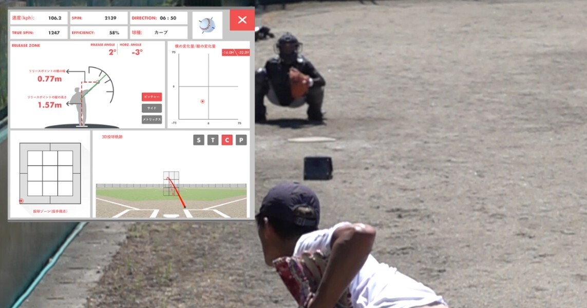 映像とラプソードのデータで、「今こういう回転をしていて、指をこういう使い方をしてるから、 今のストレートはこんな回転をしてるんだよ」と解説して、「じゃあ、こうやってみて」。映像とラプソードをもう1回撮って、「あ、変わったね」とやると、選手も納得して練習できます。