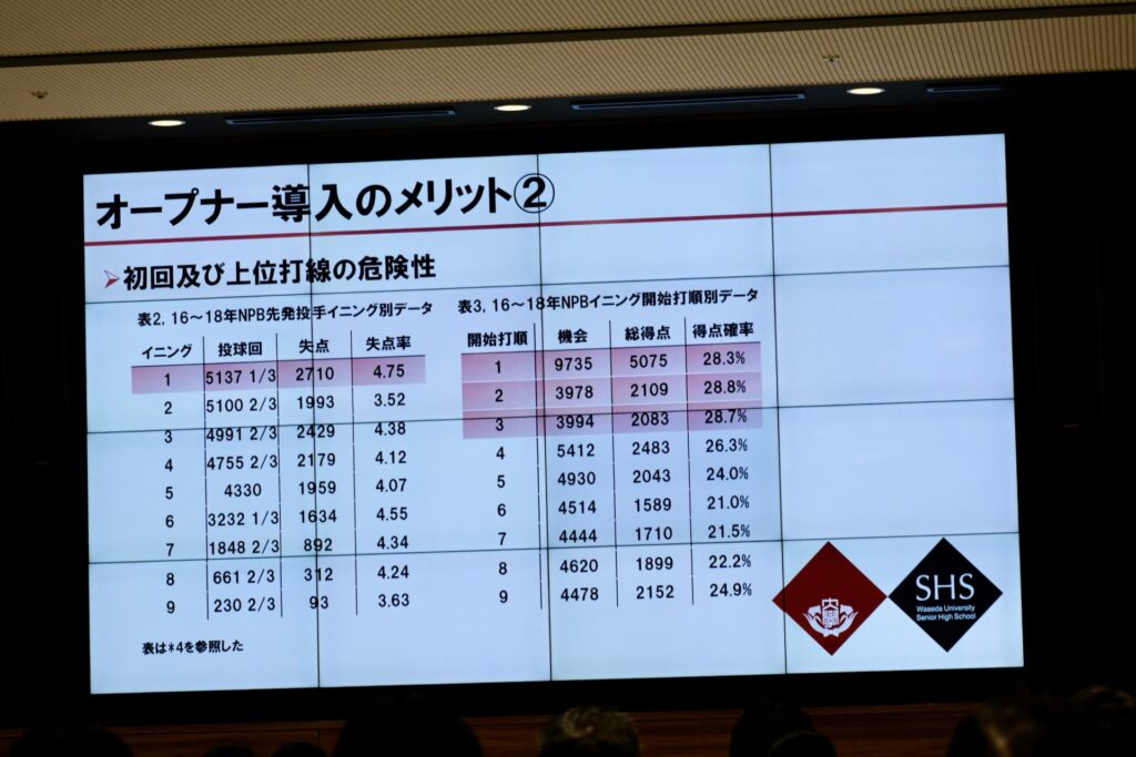 開会挨拶でBFJの山中正竹会長が、「日本の野球界でも野球の科学を大事にし、現場の指導者とアナリストが融合した組織を求めている球団、チームが増えてきました」と語ったように、近年、野球におけるデータ活用の重要性は高まっている。