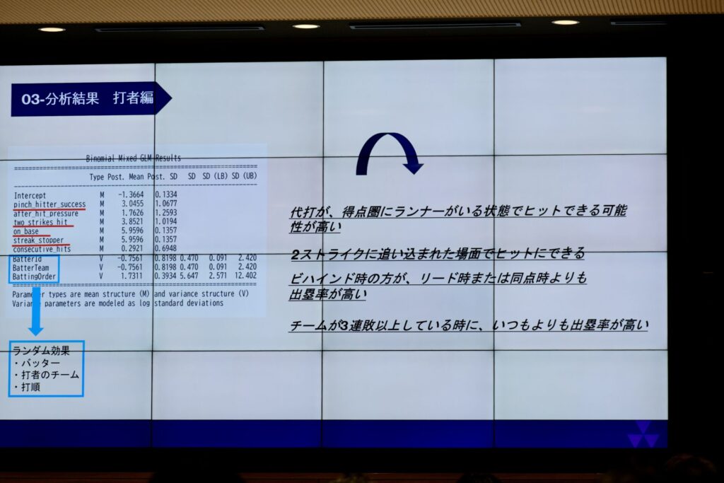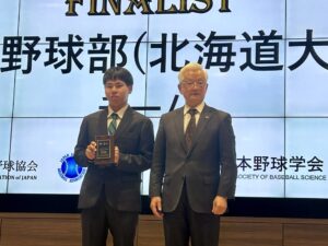 最優秀賞は立命館大学大学院の「タイミングをずらす変化球、評価できていますか?」。優秀賞は北海道大学の「継投のタイミング」。