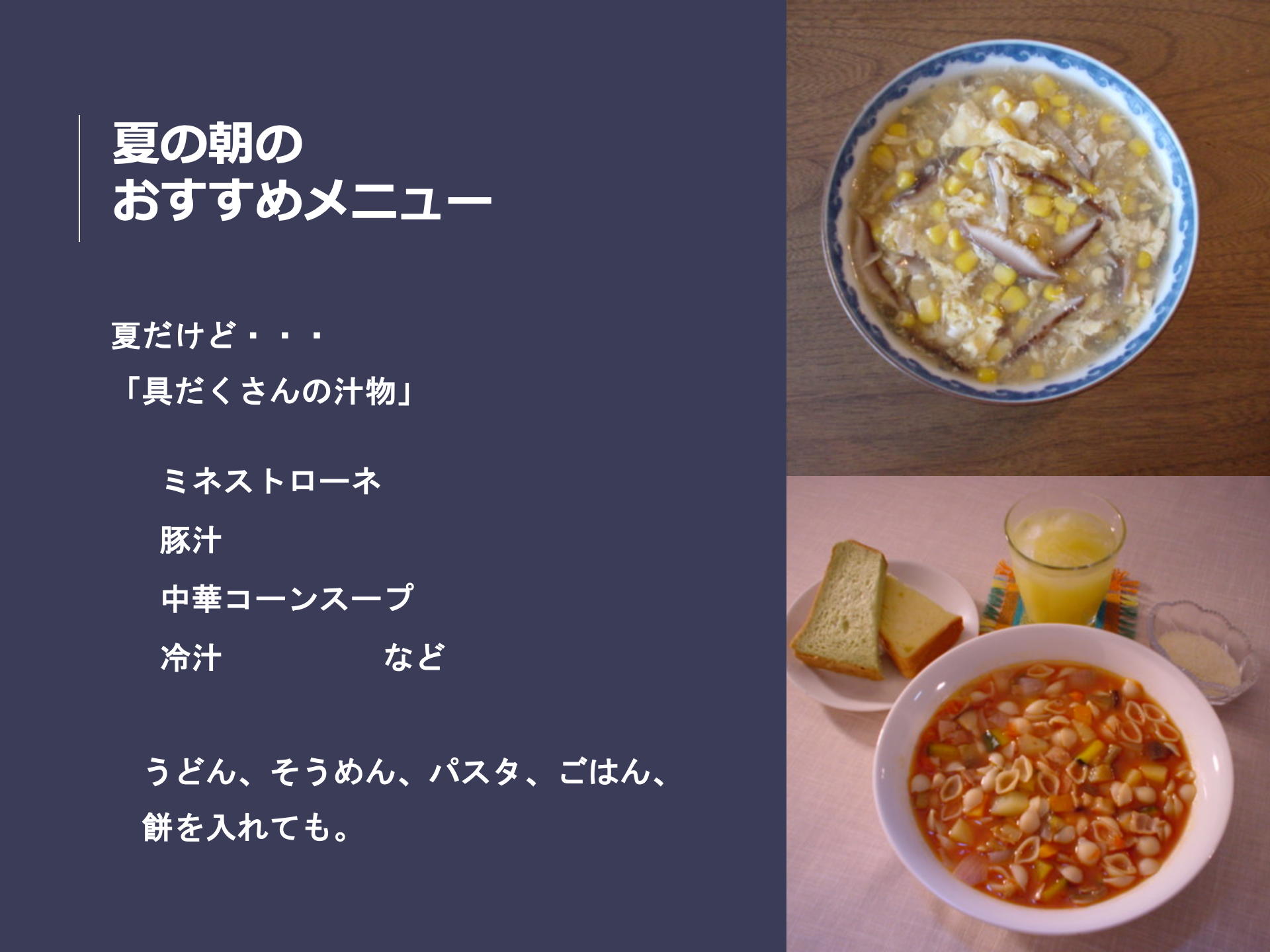 最後に、夏バテを予防する鍵となる具体的な食べ物、食べ方、栄養素について話をします。