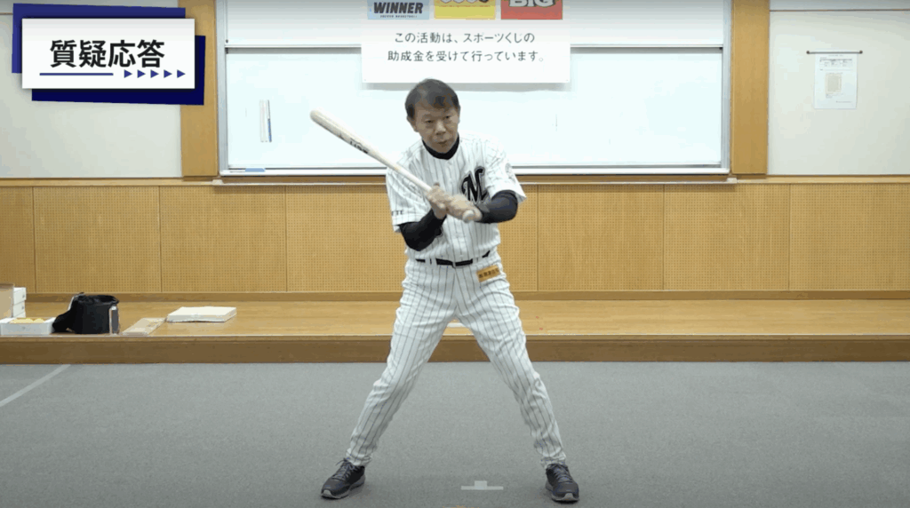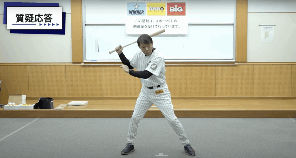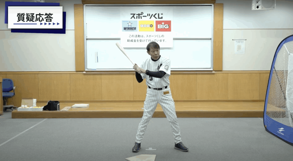 続いては中学生を対象に、「変化球に対応するため、開かずにタイミングをとる練習はありますか」という質問。
