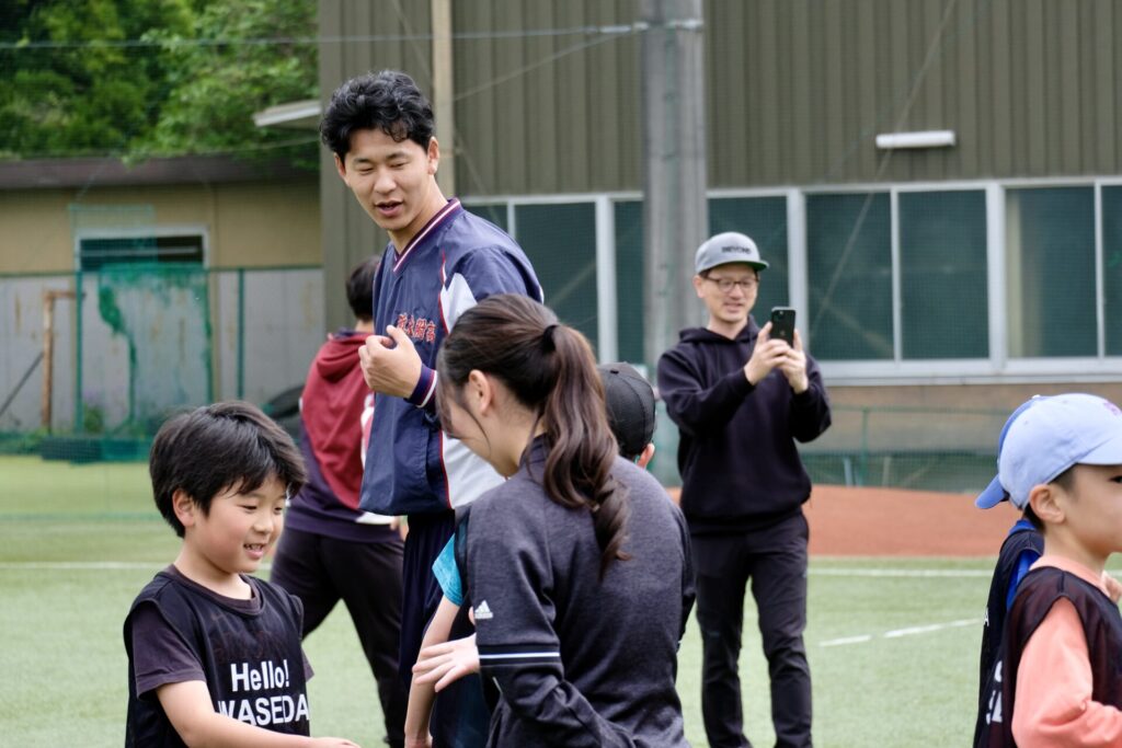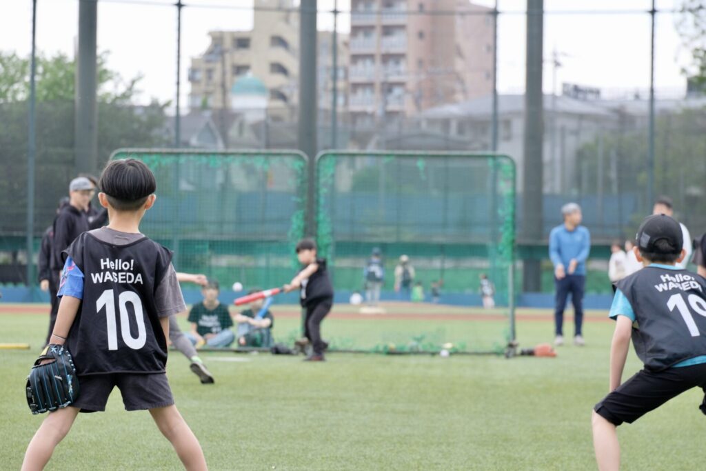 普段は早稲田大学野球部がハードな練習を行う安部磯雄記念野球場で、その日は親子でボールを打って楽しそうに走り回ったり、鬼ごっこをして笑顔で駆け巡ったり、朗らかな光景が広がっていた。