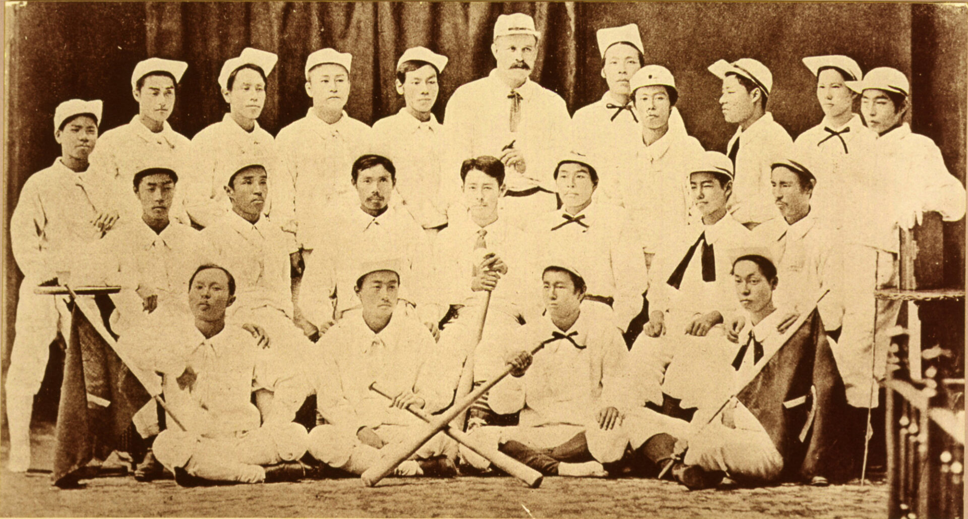 お雇い外国人教師として来日したアメリカ人、ホーレス・ウイルソンが1872年(明治5年)に第一大学区第一番中学で生徒に野球を教え、翌年から開成学校(のちの東京大学)となった同校に、立派な運動場ができると攻守に分かれて試合ができるまでになりました。