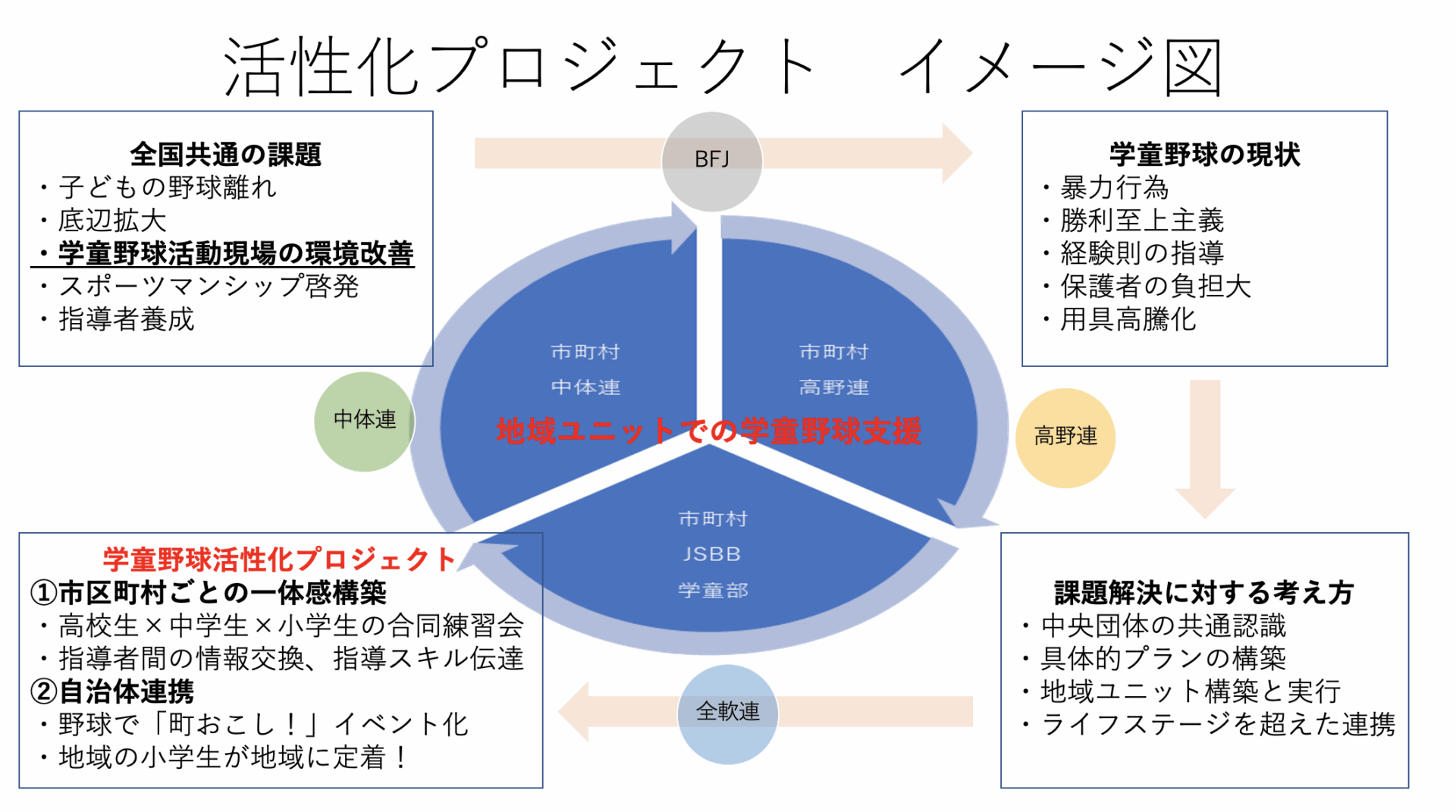 球界全体の課題である「野球離れ」をどのように解決するか、プロアマで組織している日本野球協議会をはじめ、各中央競技団体においてもその施策を検討し、計画、実施していることは皆さんご承知の通りかと思います。