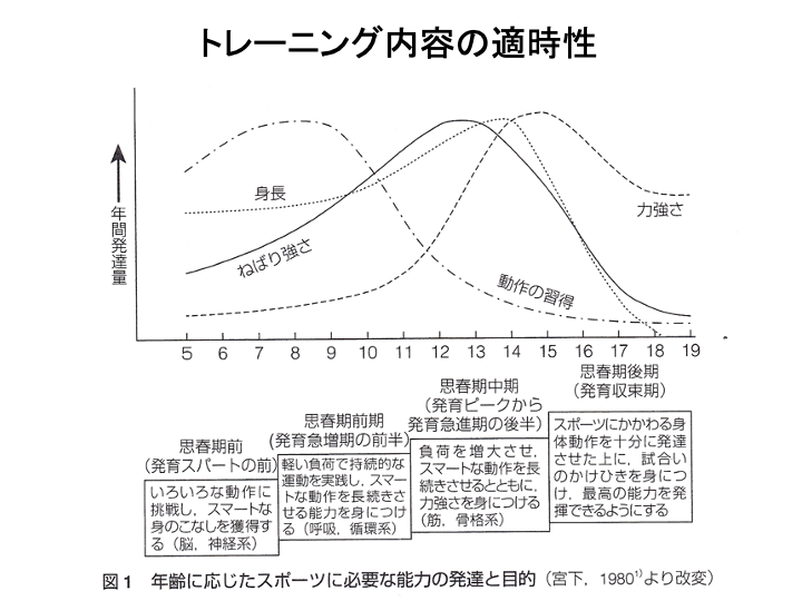 思春期に入ると身体の成長や性差が生じ、不安定な心理状態が現れることが指摘されている。思春期においても技術トレーニングは重要であるが、「思春期の不器用」と言われる急激な体つきの変化に自分自身の運動感覚とのズレが生じることもある。指導者は、選手の身体のことを第一にして選手に寄り添うといった姿勢を持つことを意識していただきたい。