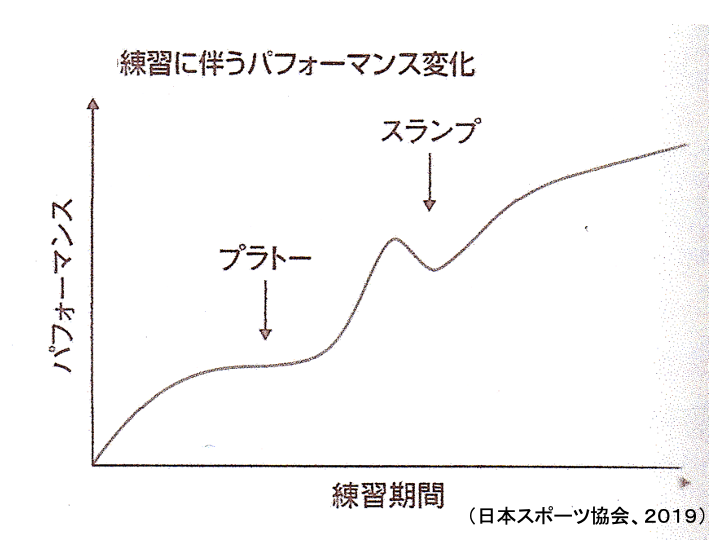 技術のトレーニングを行っていく際には「プラトー(伸び悩み)」と「スランプ」という2つの段階があることを理解しておく必要がある。指導者は、それらの原因を見出し、改善を図る必要がある。疲労や動機づけの低下などが原因であれば、それらを改善することが求められていく。