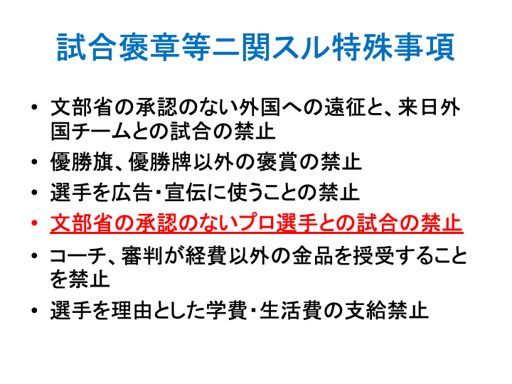 その他、試合褒賞に関する事項についても具体的な規制内容が盛り込まれた。
