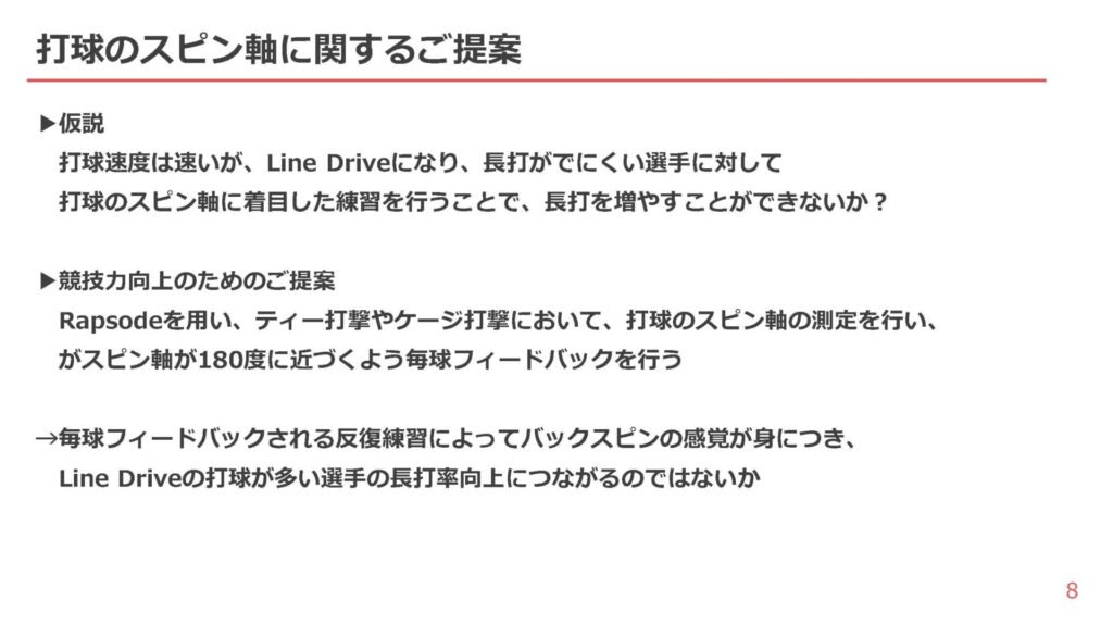 この分析は指導者にとっても、何かを変えたいと思っている打者にとってもすぐにでも活用できるものだというのが、発表を聞いての感想だった。