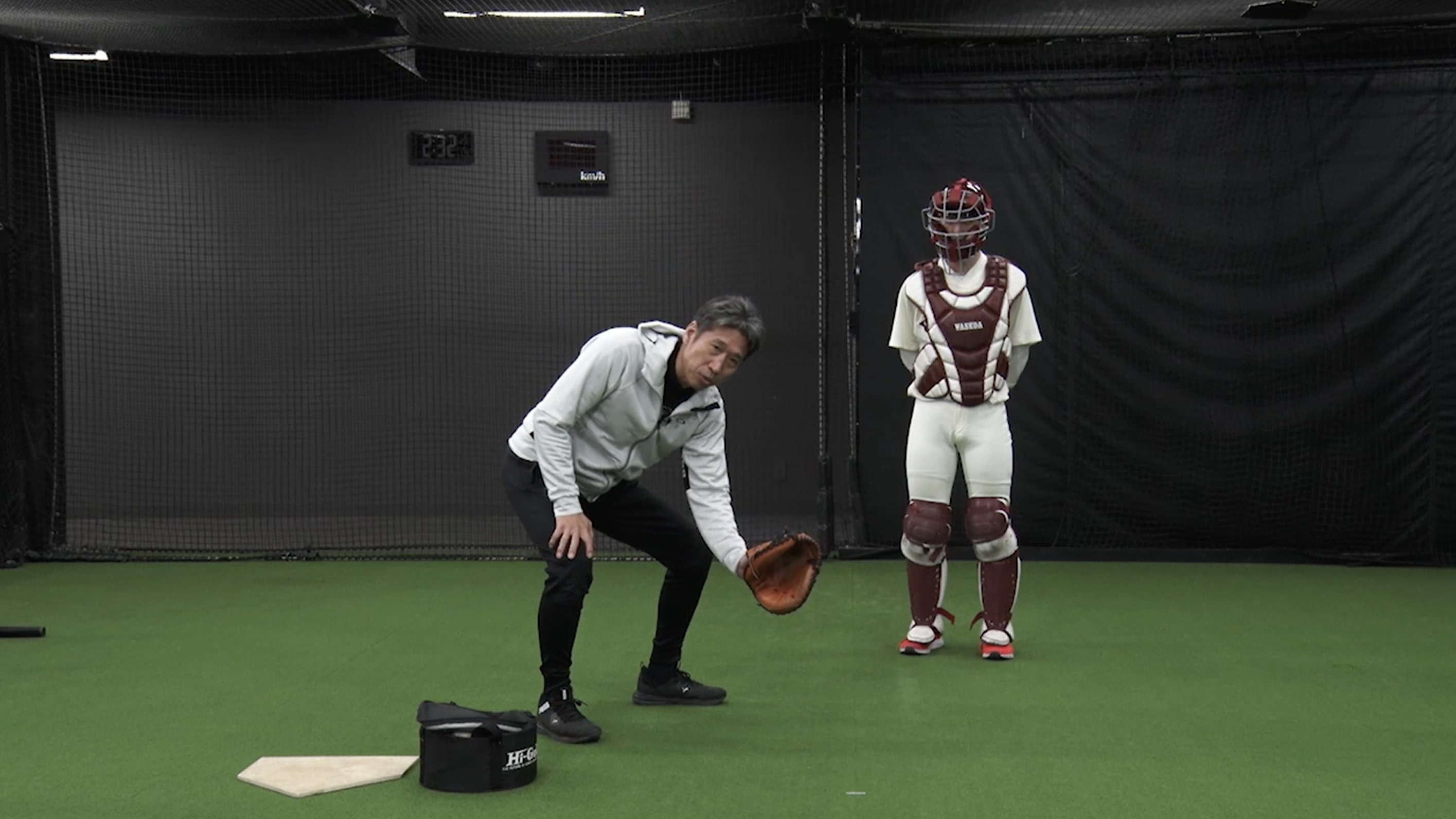 「ワンバウンドが来た時に力をグッと入れるケースを見ますが、そうなると体が固くなるので、ボールは弾みます。力を入れると体を反ることになるので、ボールが横に弾んでしまいます。なので、息を吐いて体を丸くすることで力を抜く必要があるのです」