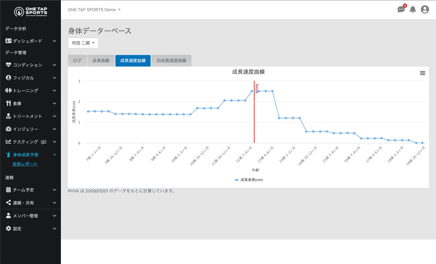 毎年春に身長、体重、座高を計測。さらに毎月、身長と体重を測ってアプリに入力していく。するとPHVの時期(PHVa=Peak Height Velocity age)と成人身長が予測されるのだ。