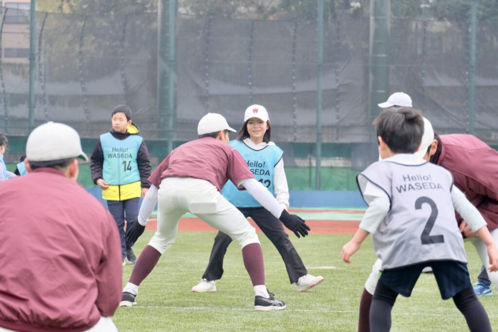 朝から降り注ぐ雨が上がった12月14日昼すぎ、早稲田大学野球部の安部球場と軟式野球場に110人の小学生が集まり、人工芝のグラウンドを笑顔で駆け回った。