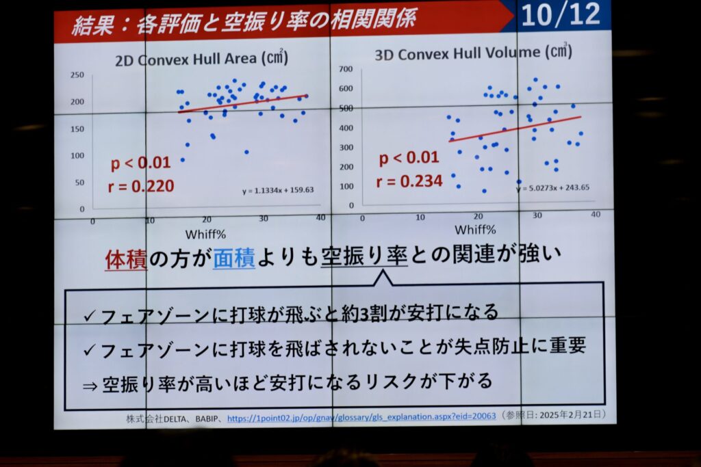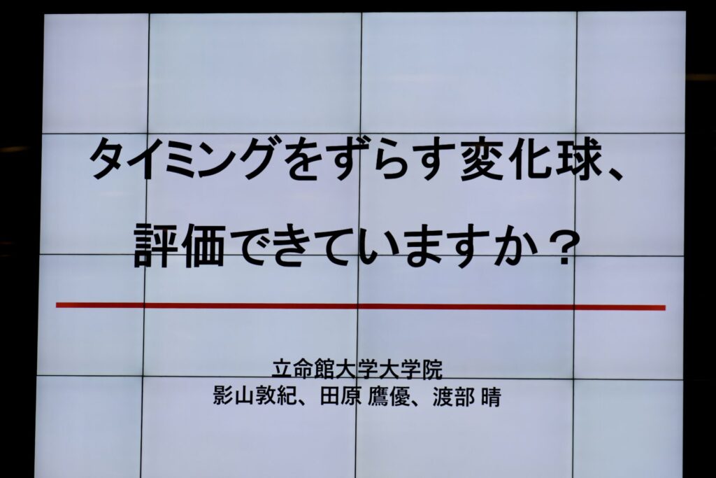 野球データ分析競技会では毎年テーマが設けられ、2025年の第4回大会は「野球の競技力向上」。決勝では東京六大学の計80試合のトラックマンデータから各チームの設定テーマに応じて分析され、「タイミングをずらす変化球、評価できていますか?」、「継投のタイミング」、「オープナーの有効性」など多彩な観点から発表が行われた。いずれも高校生や大学野球部の学生アナリスト、大学院生らが趣向を凝らして研究・発表し、現場で活用できそうな内容だった。石井氏が続ける。