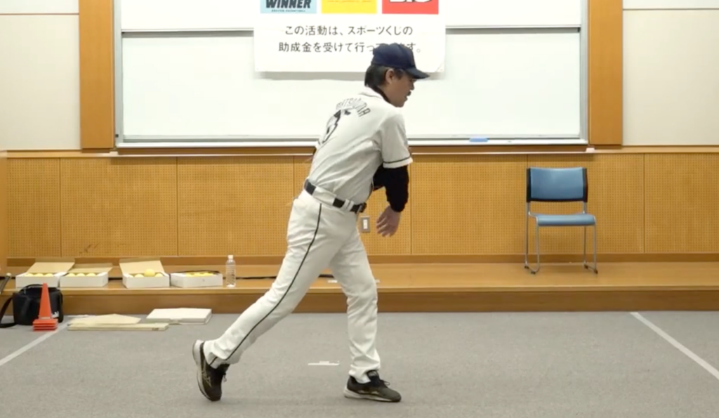 軸足に体重を乗せることで力が蓄積され、スムーズな体重移動へと繋げることを一連の動作を通じて説いた。続けてフォロースルーで体重を乗せることによるメリットについても解説を加えた。