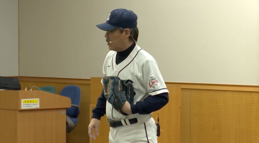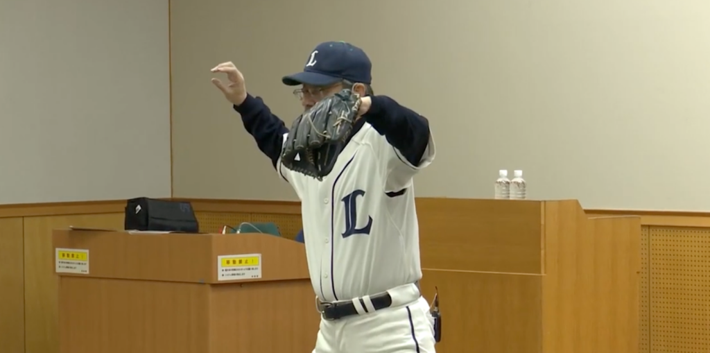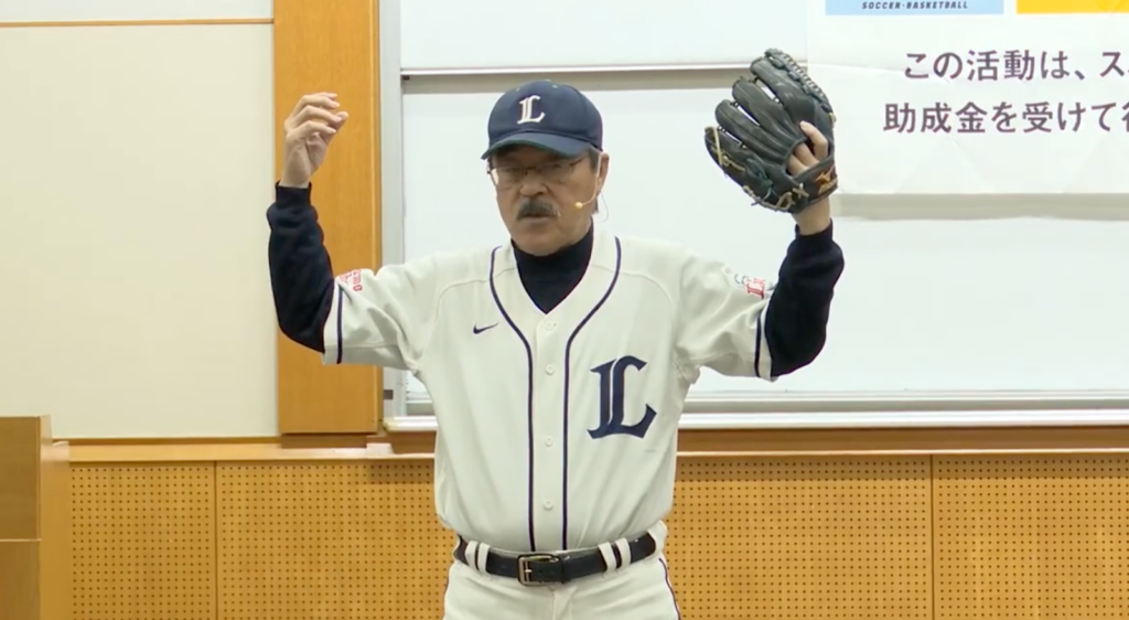 毎年行われる本講習では4ポジション(打撃・守備・投手・捕手)に分かれた実技講習があり、投手編では松沼博久氏(元西武)が担当。