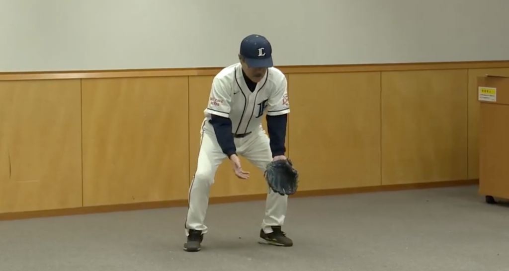 「例えば一・二塁のケースでバントしてきたとします。その時は皆さん半身になって、捕って二塁へ投げるんですね。 実は半身で捕ると守備範囲が狭くなるので、イレギュラーした時に弾いてしまって対応ができない。