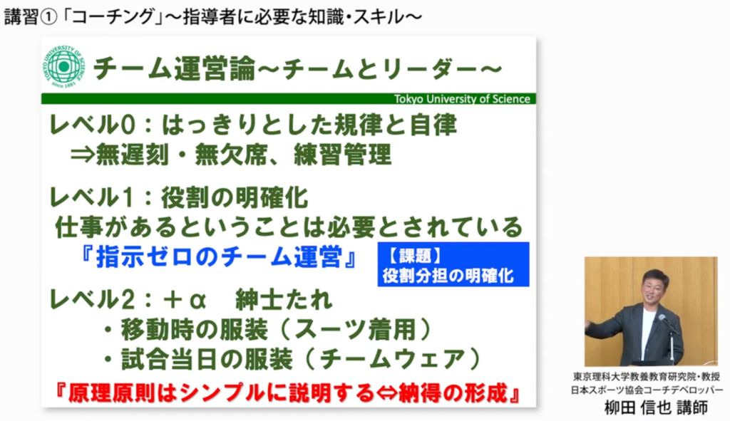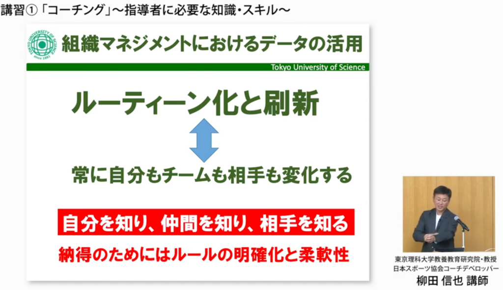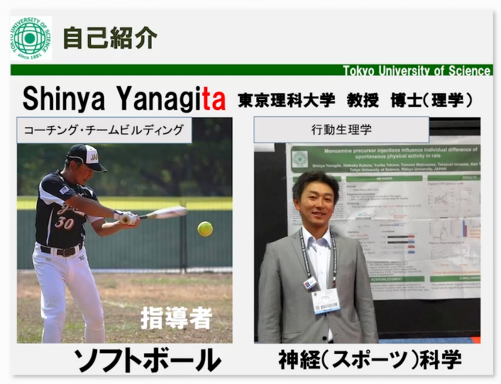 今回講師を務めるのは柳田信也氏。東京理科大学の教授で、同大学ソフトボール部の顧問・監督と硬式野球部顧問を務める。