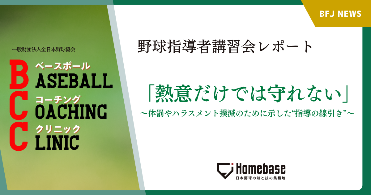 全日本野球協会(BFJ)が主催する「2025年度 野球指導者講習会(BCC)」では、技術論や育成論と並び、指導現場の根幹に関わるテーマも扱われた。