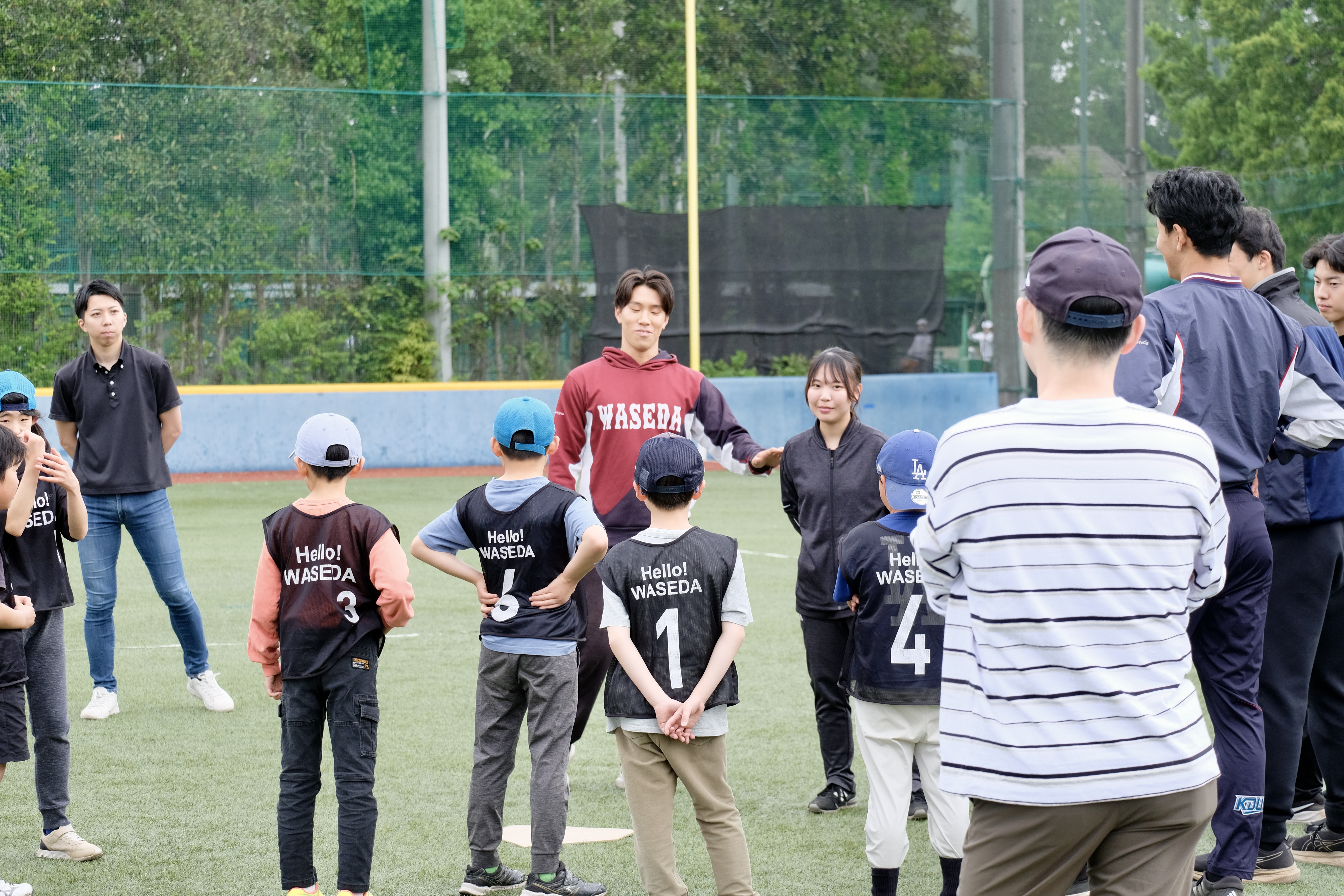 参加費は無料で、小学1〜6年生の男女が対象だ。早稲田大学の卒業生をまとめる校友会が主催し、勝亦教授ら野球部OBが運営、公式戦に帯同しない現役部員が手伝っている。