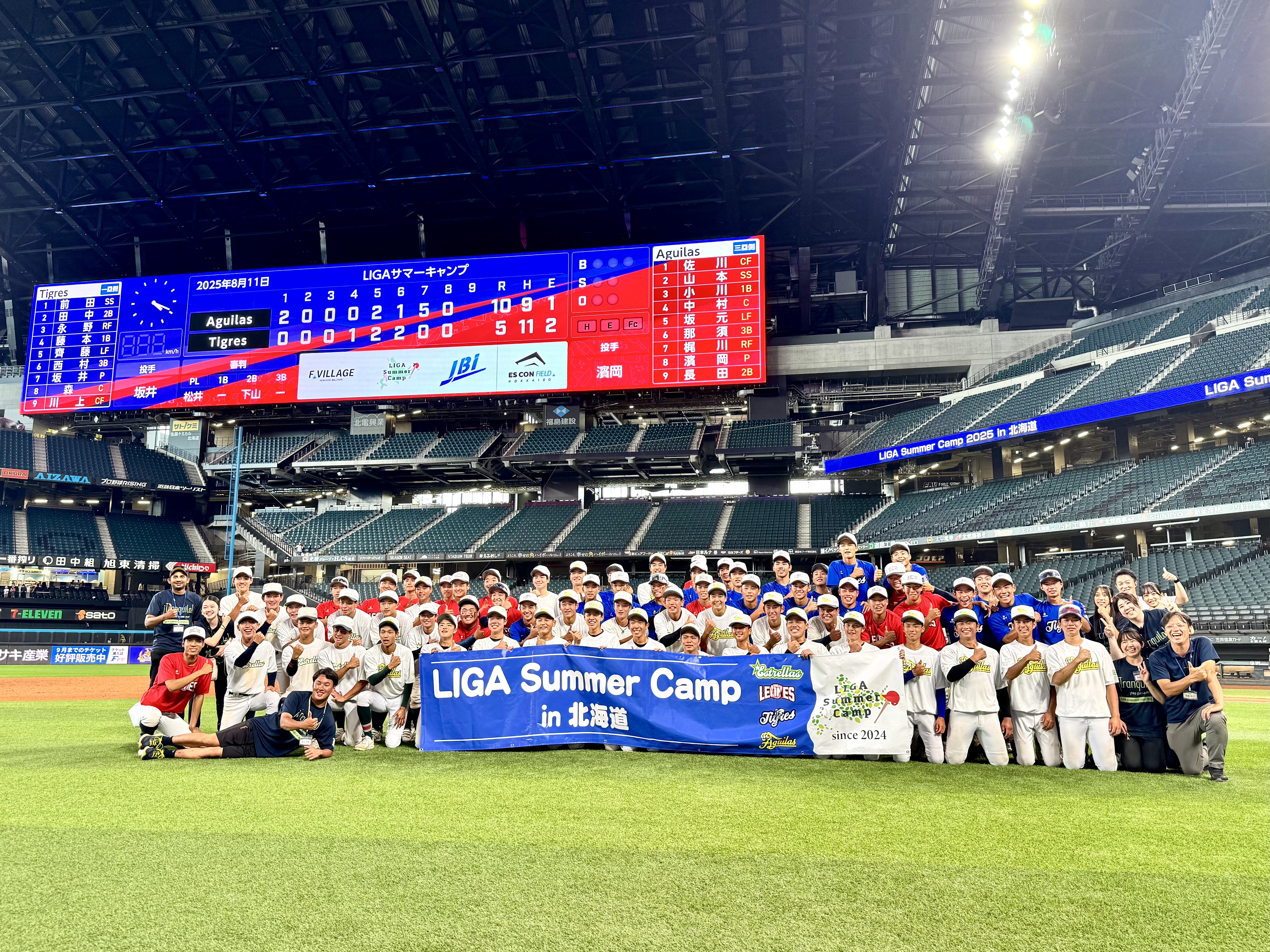 栗山町民球場、新十津川町ピンネスタジアム、そしてエスコンフィールドHOKKAIDOを舞台に展開されたLIGA Summer Camp in 北海道。4チーム64人のプレーヤーたちは、総当たり各2試合ずつのリーグ戦、1位と4位・2位と3位が当たるプレーオフ、そしてPre Final、Finalと計8試合を戦い抜いた。