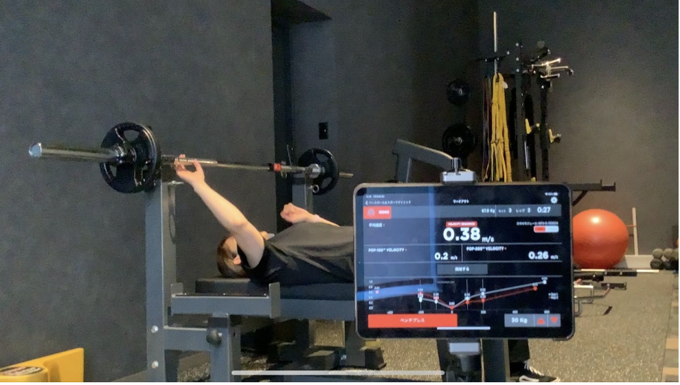 ウエイトトレーニングにおいては、近年注目されているVBT(VelocityBasedTraining)が導入されている。