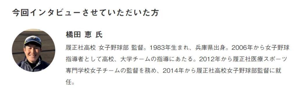 2014年の創部以来、「日本一」という目標だけでなく、将来の日本を支える、また女子野球を支える一人となれるような人間形成や、未来の女子野球選手のためにも女子野球の新たな歴史の1ページを築いていけるような活動や取り組みを心がけている。そんな同チームの取り組みについて、監督の橘田(きった)氏に話を伺った。