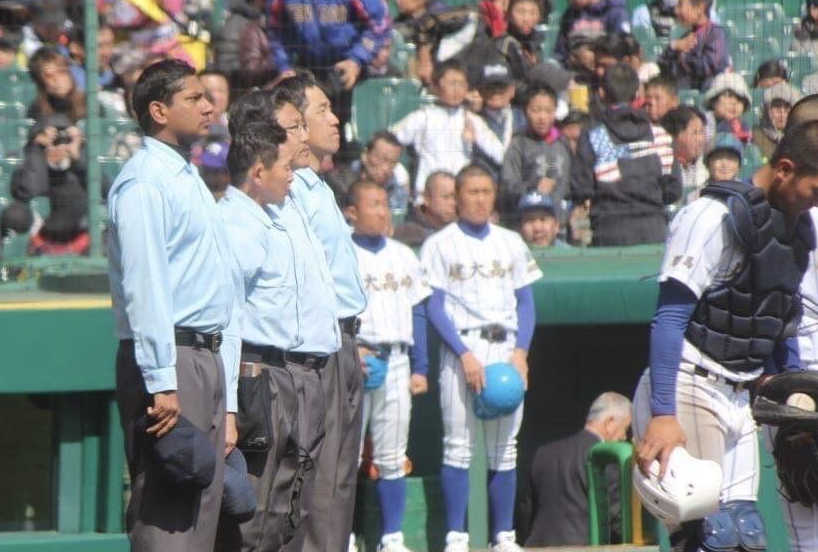 (写真:本人提供 2015年の選抜高等学校野球大会の時の様子 審判団の一番手前がスジーワ氏)