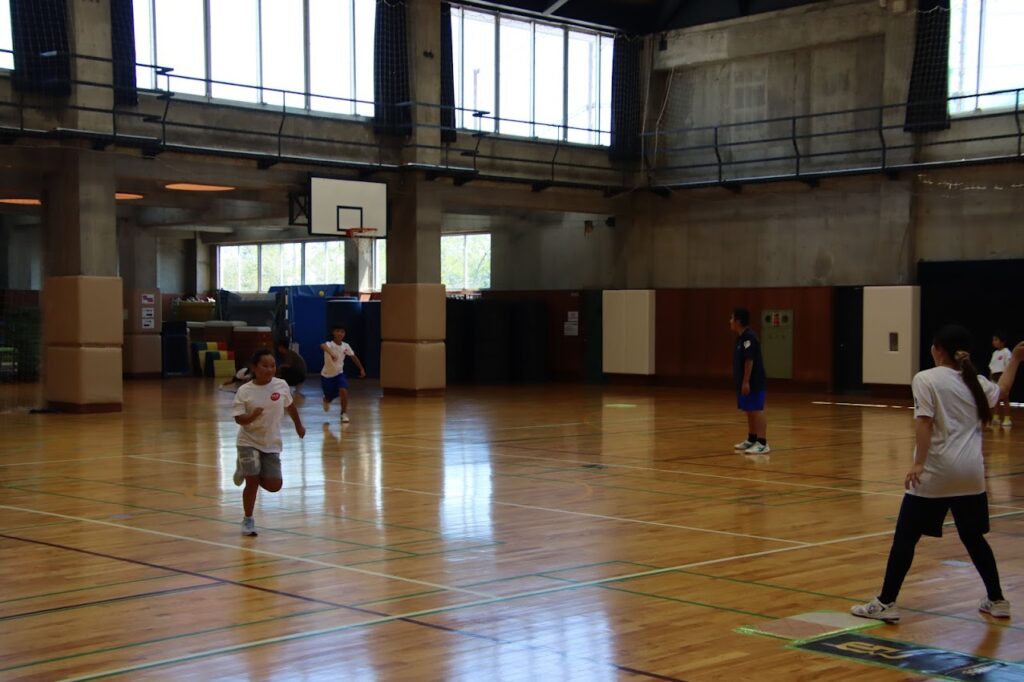 走ることも4つのベースを使ったゲーム形式で行い、6歳〜7歳の子どもたちが楽しめるように工夫を凝らしている。