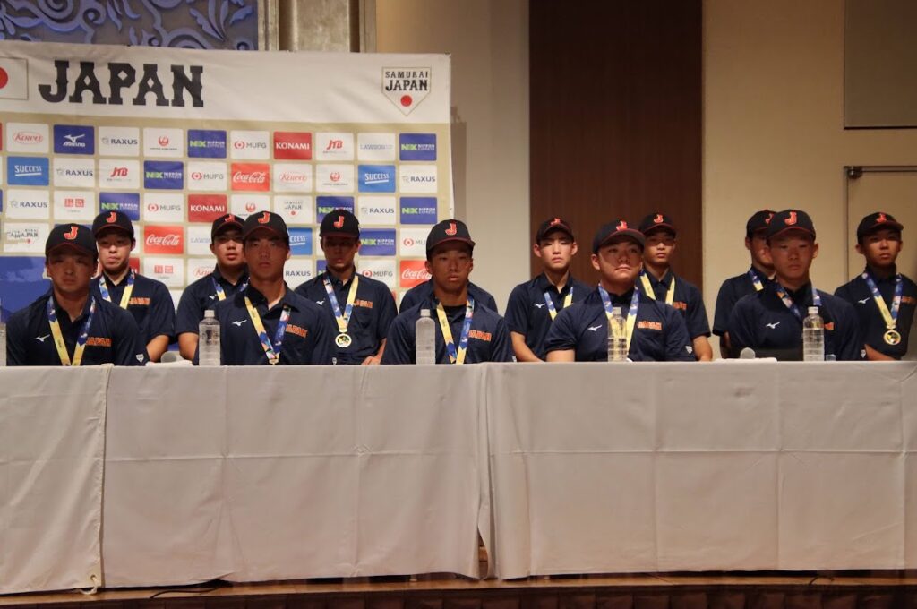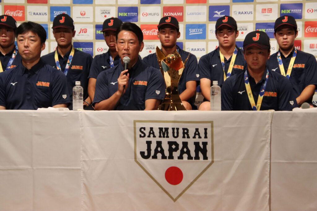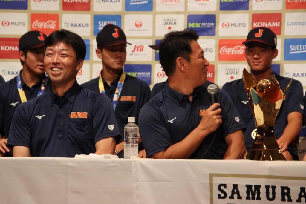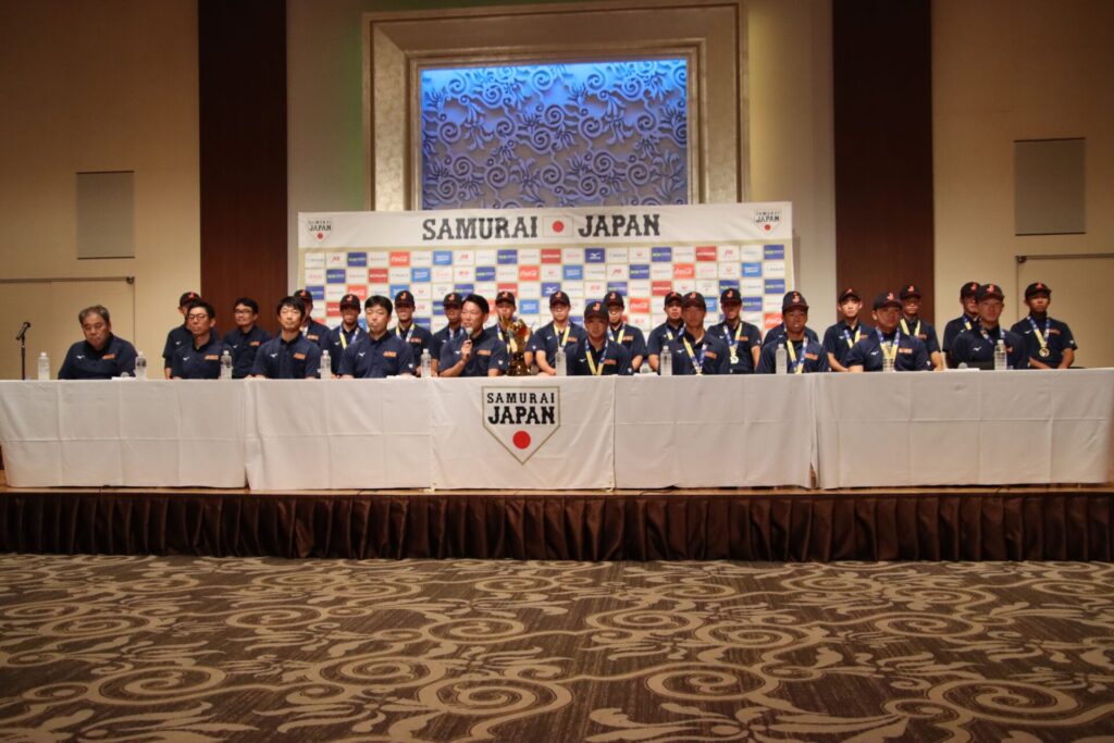 千葉県成田市内のホテルにて記者会見を行い、井端弘和監督・激戦を戦い抜いた選手たちが大会での心境などを語った。
