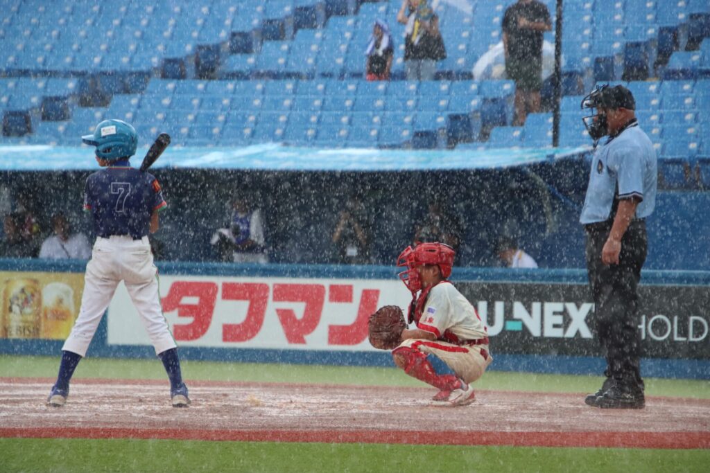 4回に一挙9得点、豪雨でコールドに