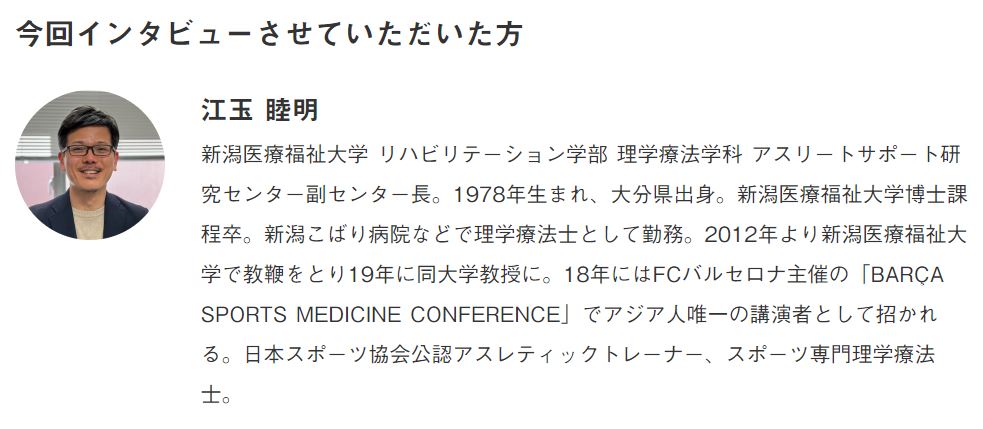 この傾向は監督にも伝えて連携しながら、怪我の予防および、怪我が発生したタイミングですぐに復帰できるように我々も準備するようにしています。