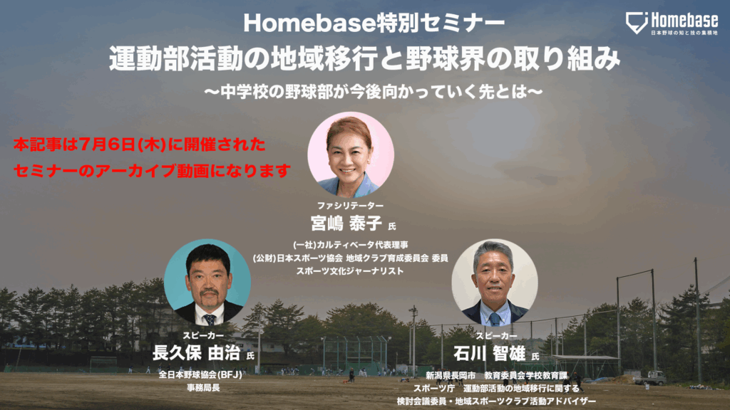 【セミナーアーカイブ動画】運動部活動の地域移行と野球界の取り組み 〜中学校の野球部が今後向かっていく先とは〜